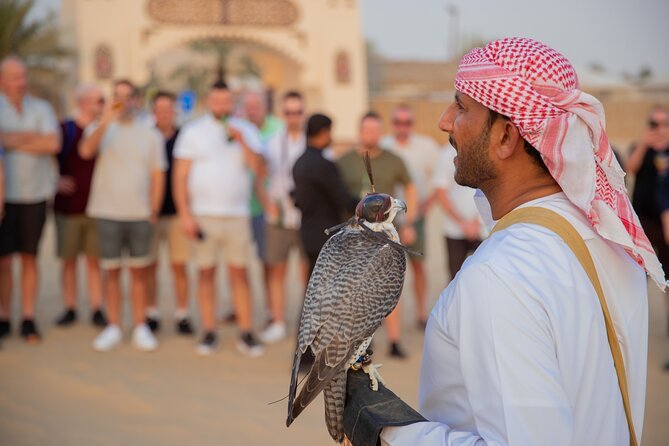 • Départ depuis l’hôtel dans un véhicule confortable • Balade en véhicule jusqu'à l'entrée du camp • Surf sur sable, volley-ball, tir à l'arc doux et plus encore • Boissons gazeuses et apéritifs (veuillez nous prévenir 48 heures à l'avance en cas d'allergie ou besoins spécifiques). Dîner sur option • Balade à dos de chameau au camp • Spectacle de faucons • Des cocktails sans alcool sont disponibles à l'achat • La photographie au coucher du soleil est disponible au camp moyennant des frais supplémentaires (sur demande avec un préavis de 48 heures) • Retour à l'hôtel dans un véhicule confortable